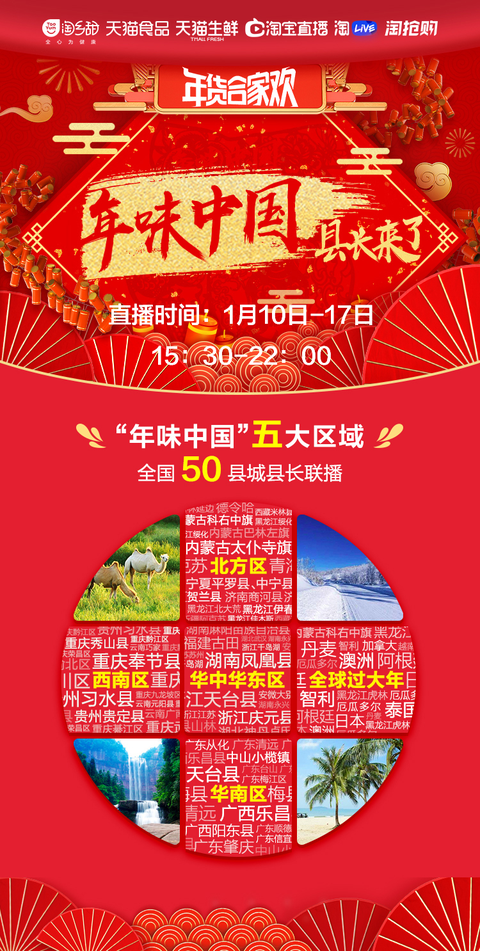 Arrive 17 days from January 10, the direct seeding that clean out treasure will be in Guangdong, Chongqing, Shandong, Guizhou, Zhejiang, Shaanxi, inside unconscious and other places is held 7 days continuously " year head of a county of flavour China · came " thematic direct seeding. From year of flavour late banquet of Guangdong, to the hill city culture of Chongqing, celebrate to Zhejiang again yuan Xianggu mushroom museum, "Year flavour China " the characteristic cate each area in north and south of include China thing and culture.