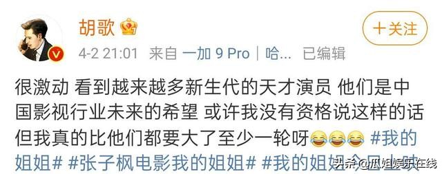 Hu Ge also is in 2 days the acting of Zhang Zifeng of assist of dot of gregarious platform dispatch, the new film that is her feels proud, call her the future of Chinese film and hope.