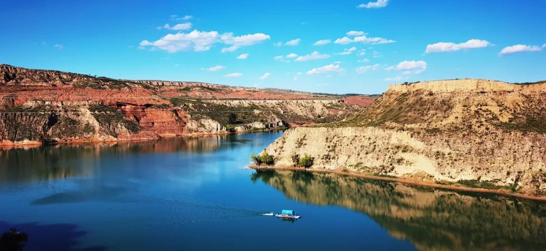 The commissioner comments on: The sky of azure blue mirrors in water, both set each other off and valley photograph are accompanied, form particular attractive view. A boat has delimited clear the river water of the face that be like lens, easily one static, produce the tension of a kind of balance, yield a picture more add variety. Nowadays, wave cereal already became the good Changjiang Delta of North Shaanxi.