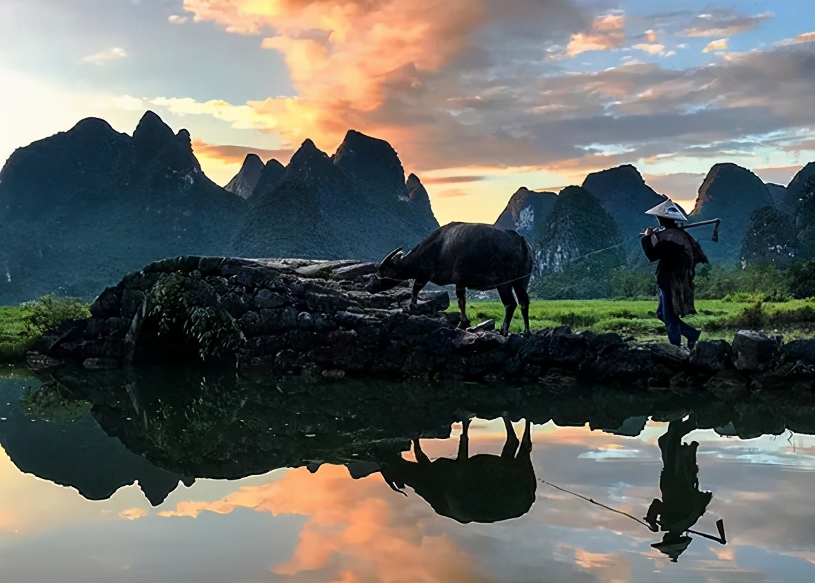 The commissioner comments on: The author uses low angle to use the ability method of foreground inverted image, apply colours to a drawing main body configuration, build picture atmosphere, with echo of far hill alpenglow, form a sharp dimensional move, guide picture of development of line of sight of the person that watch. What farmer and farm cattle broke early morning is halcyon, let quiet countryside be full of vigor however. If the head of farm cattle and the light that are in the position are compared,highlight again a few, arrogant outline is met clear.