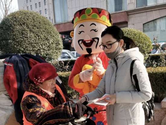 "Mammon travels together " the one large window that is this sale activity, the staff member makes mammon dress up, the hand is held in both hands contain " fund is wide into " of model of written characters " gold dollar treasure " , attracted a lot of clients to stop take a picture.